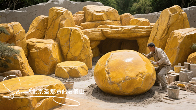 黃臘石假山在所有的假山中是難疊砌的,他的形狀大多和卵石相似,所以不適于做大型假山,只適合做小型的庭院假山,在做別墅假山時(shí)要精心挑選上下有平面的適用于堆砌的石料,由于黃蠟石在后被開(kāi)采之前所處環(huán)境有很大差別,有水溝中直接開(kāi)采的、有土埋的,所以黃蠟石的品相差別很大。